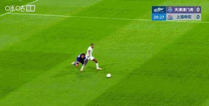 第20分钟,场上形势发生了变化。津门虎在后场断球之后快速反击,在中场位置进行传球配合。郭皓接到皮球带球向前推进的速度很快,很快就突破了申花的第一道防线马纳法上前防守时两人发生碰撞倒地