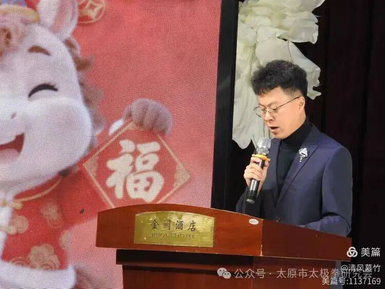 太原市体育局副局长姬金伟受邀致辞,对太原市太极拳研究会过去一年的工作给予高度评价。同时寄语研究会,要以此次年会为契机,守正创新、久久为功,让太极文化在新时代焕发更强生命力,吸引更多群众参与其中、受益其中。