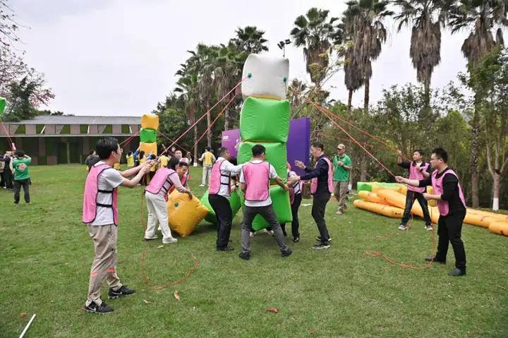 “步步高升”气模拓展项目则开启脑力与协作的双重较量,瞬间点燃了大家的好胜心。各小组齐心协力、默契配合,有的拉紧绳索,有的指挥方向。当一座座通天塔稳稳矗立,队员们都忍不住欢呼雀跃。最终,大家以搭建层数一较高下,无论输赢,每个人的脸上都洋溢着成就感,这份在挑战中并肩作战的快乐,成为春日里最珍贵的记忆。