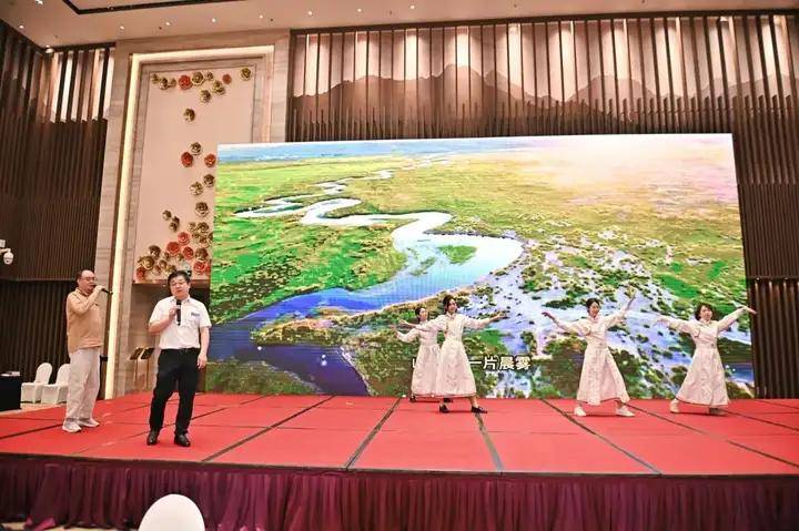 晚宴压轴节目温情上演,大成南宁分所主任李安华律师与大成海口分所主任汤尚濠律师携手桂美人啦啦队带来歌舞《天边》。悠扬的歌声响起,两位律师的嗓音嘹亮婉转,桂美人啦啦队的舞姿优美灵动,将现场带入辽阔悠远的意境,“天边的云卷云舒,恰如我们此刻的心境”,从容、温暖,又满是对未来的期待。台下同仁静静欣赏,沉浸在这份美好与温情之中,为整场才艺表演画上了圆满的句号。