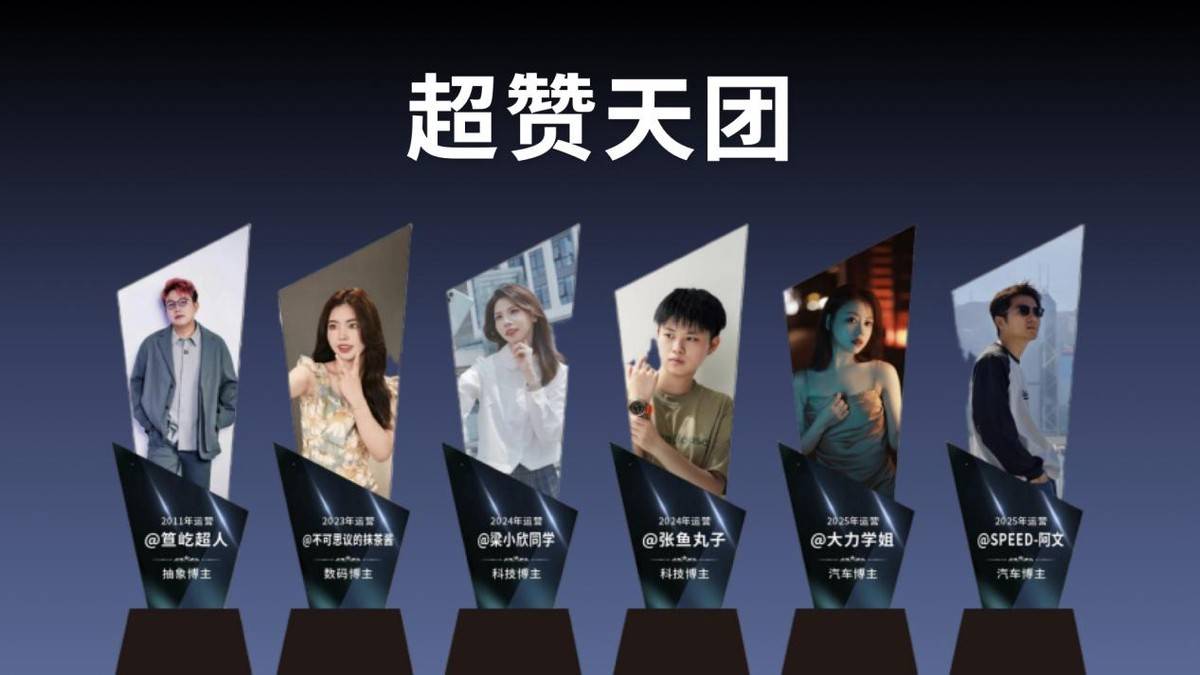 从2024年超赞时期正式开启,超赞传媒创始人笪屹超人就带着团队,搭建起了完整的“超赞天团”。从2011年就开始做运营的他自己,到2023年加入的@不可思议的抹茶酱,2024年入局的@梁小欣同学、@张鱼丸子,再到2025年加入的@大力学姐、@SPEED-阿文,从数码、科技赛道,到汽车、生活赛道,超赞天团的每一个博主,都是垂直领域的优质创作者,也都是超赞传媒最珍贵的宝藏。
