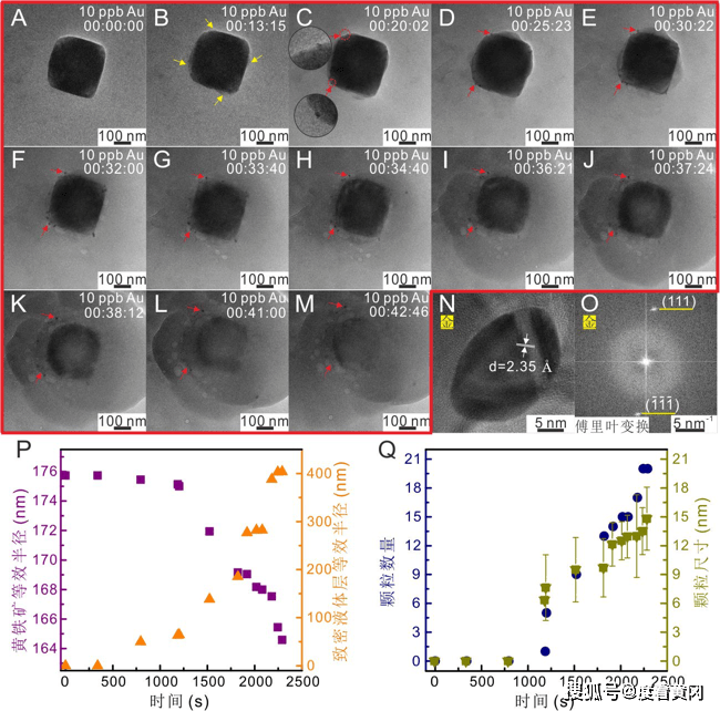 中国科学家利用原位液相透射电子显微镜技术,首次从纳米尺度原位“直播”了液相环境中的黄金纳米颗粒在黄铁矿表面形成的动态过程,提出黄铁矿诱导金沉淀的新机制。该成果将于本周在《美国国家科学院院刊》正式上线。
